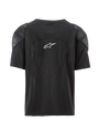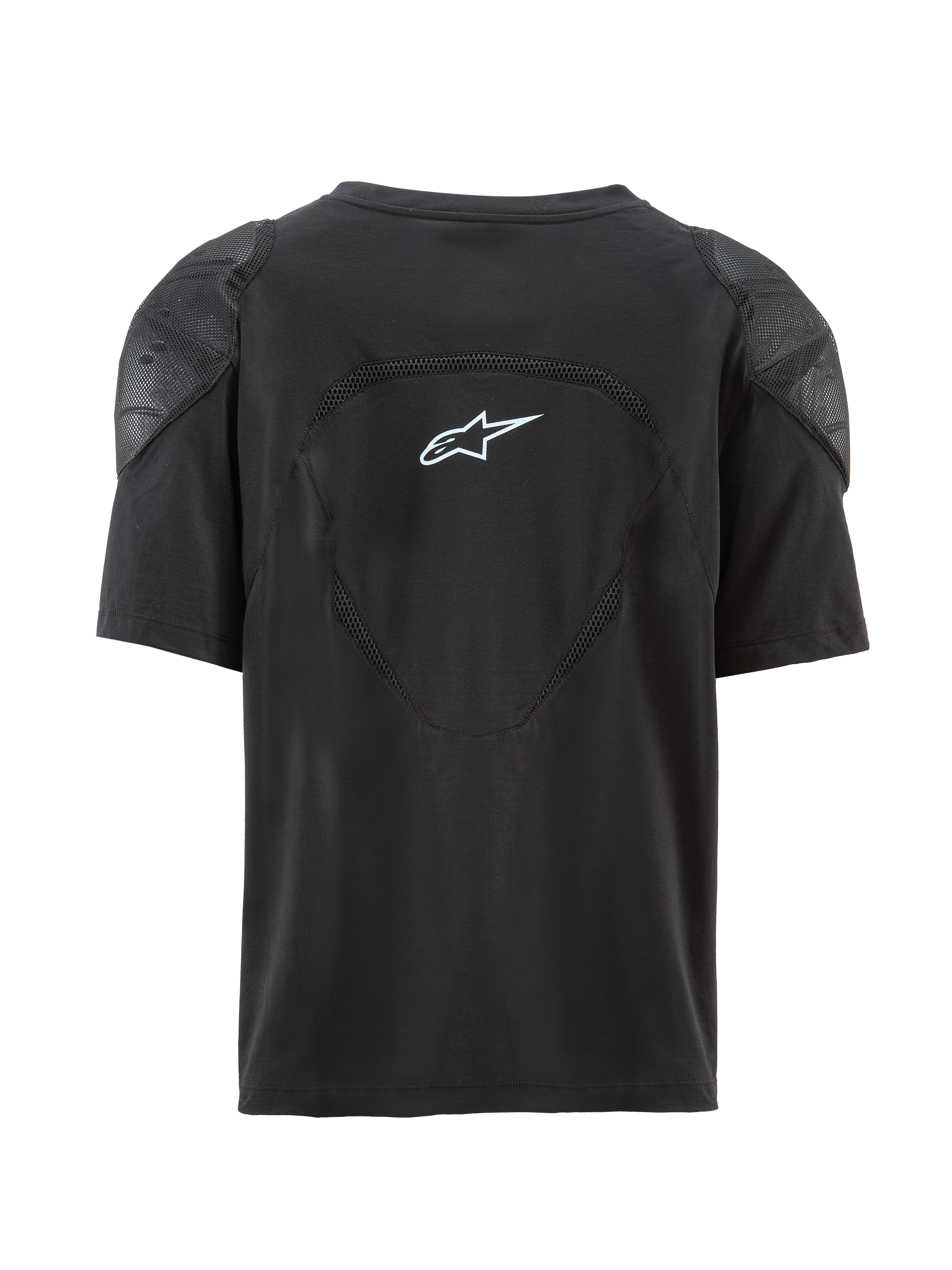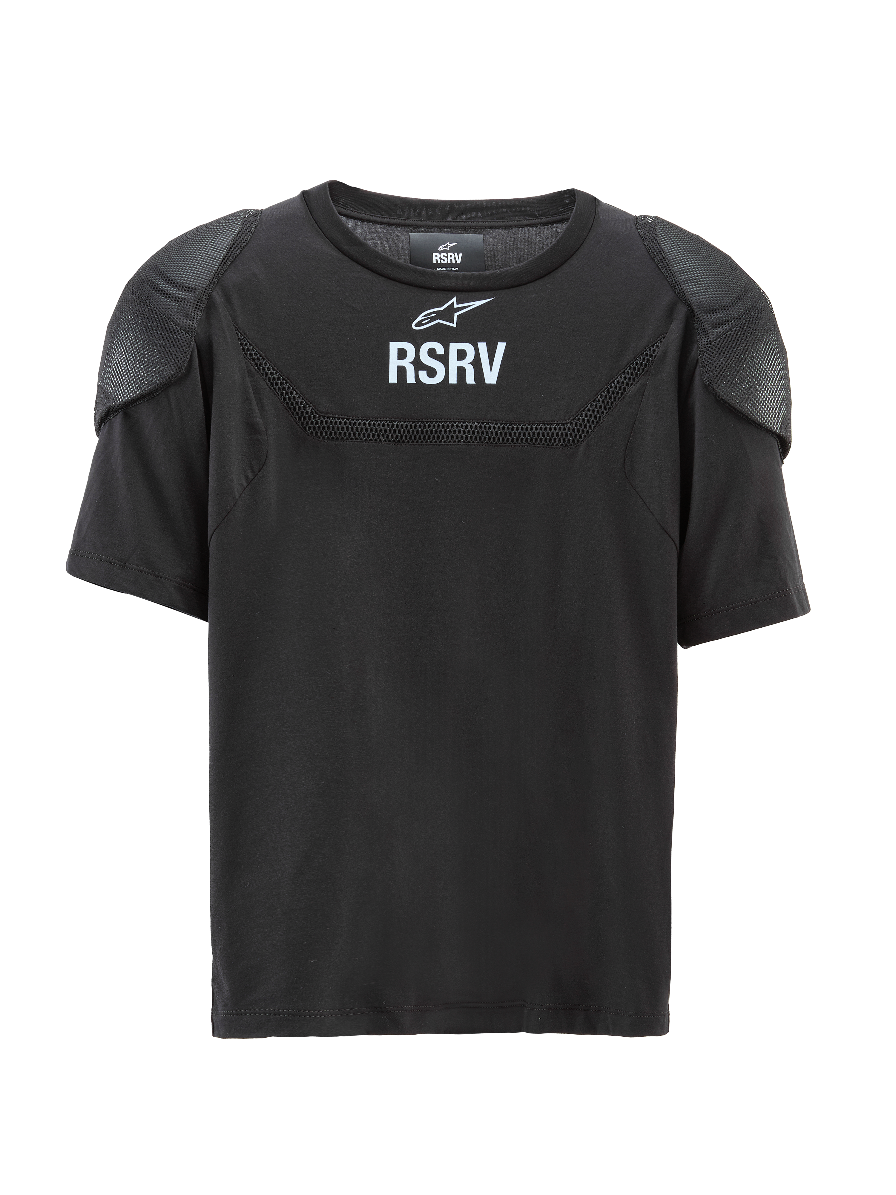 There are essentially two categories of short-sleeved t-shirt. Basic, and technical. The NUCLEON TEE is both. Based on a classic box-cut cotton t-shirt, the NUCLEON TEE starts with a traditional fit and familiar fabric, but it is elevated into something imposing and technical. The mid back and chest areas integrate 3D Mesh yokes that contour the form of the wearer with a technical material borrowed from Alpinestars motorcycle race garments. The shoulders are capped with deadstock protective pieces normally utilized for road racing protection. The ergonomic low profile protectors blend a lightweight, perforated open cell structure with Alpinestars Flex technology. They are affixed to the shoulders beneath a mesh pocket, adding a visual element rather than just shape. To overstate the presence of the shoulder protectors, they’ve been finished with a reflective ink.
