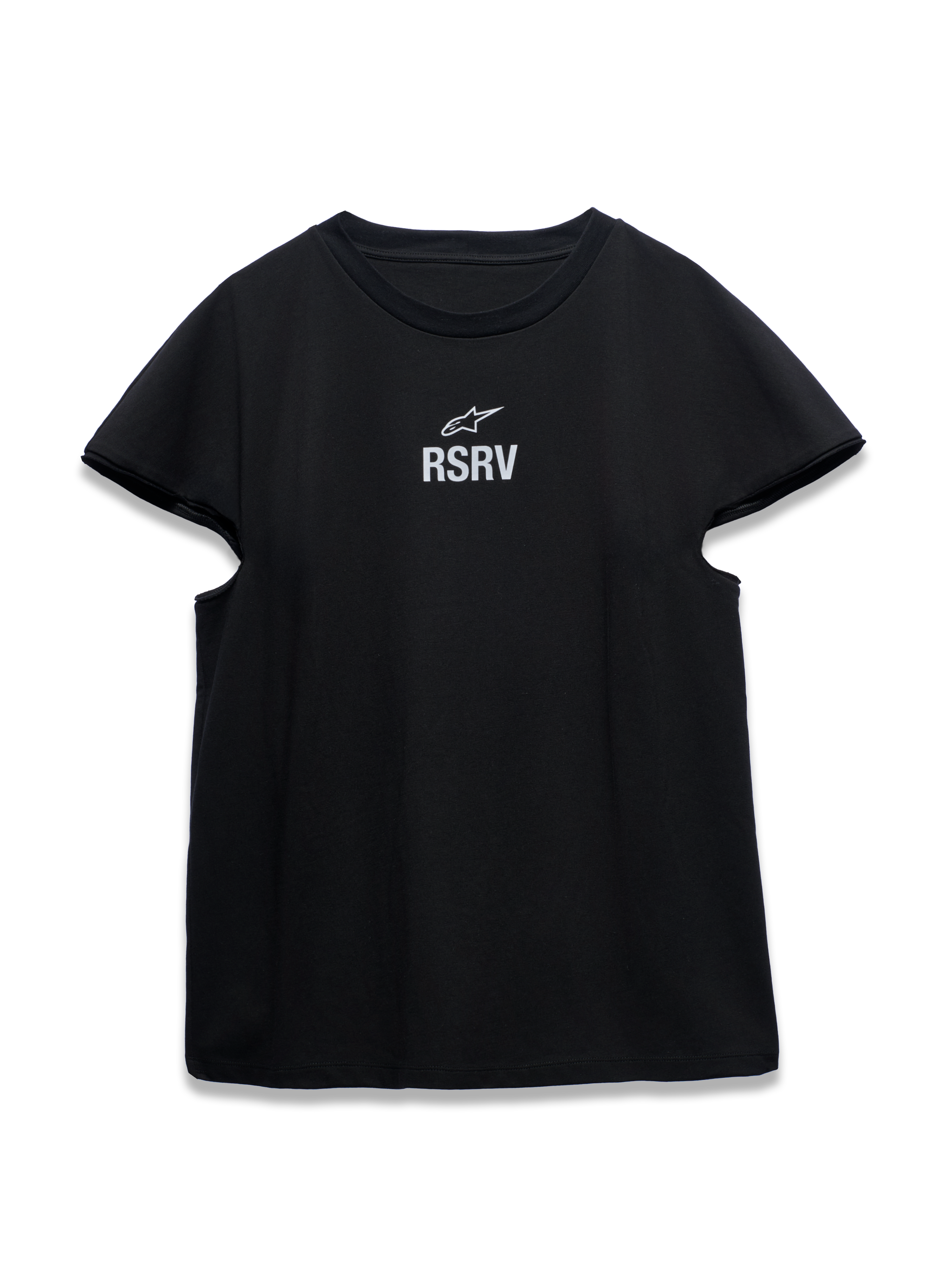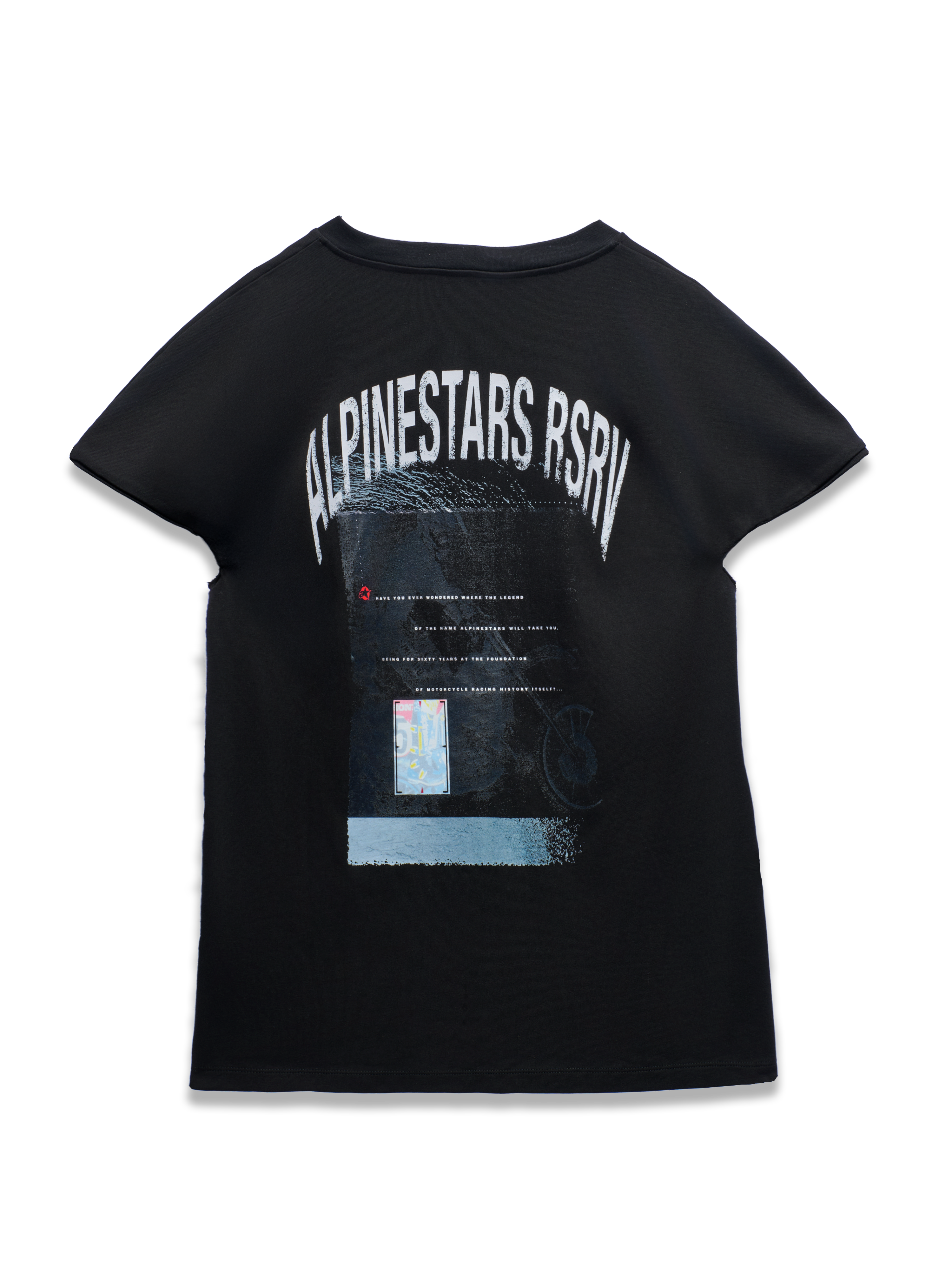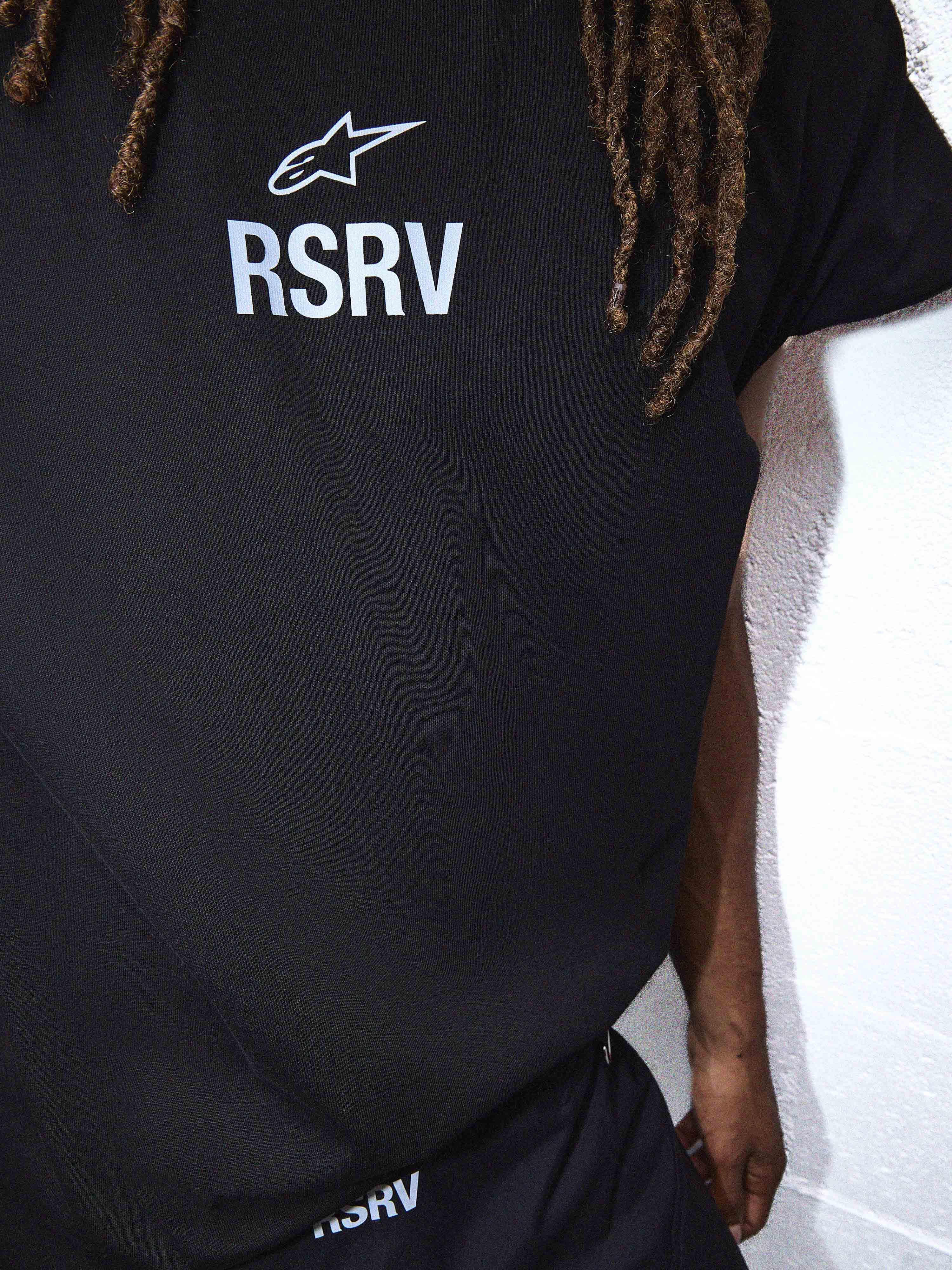 Raw energy. Boundless ambition. Perfection is practiced, but not yet mastered. Style is mandatory. These are the attributes of the rookie and the Rookie SS Tee are these. Casually quick, but not buttoned up. Flowing and free. The cropped, yokeless sleeves and symmetrical front/back construction give it a genderless ambiguity. The front features simple Astar and RSRV branding, while the back features a distressed print of a vintage 1980s Alpinestars magazine ad. The conflicting identities of the rookie are further explored in the available black, and more eccentric pink colorways.